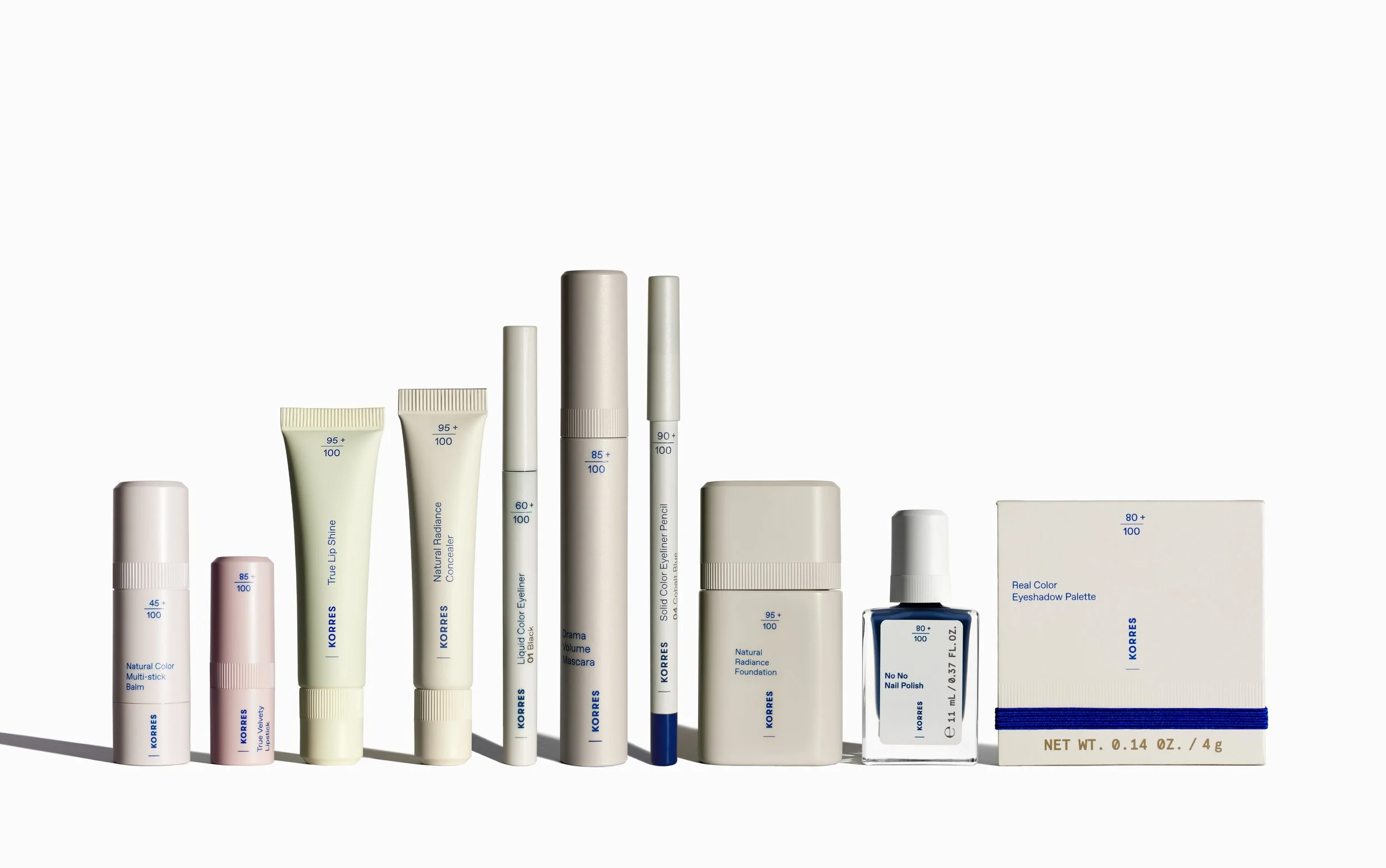 Soft pastel tones and subtle floral details highlight the brand’s clean formulas, while typography in KORRES’ iconic blue, anchors and unifies the system. The Natural Origin Fraction is elevated as a defining visual cue, turning transparency into a core design element.